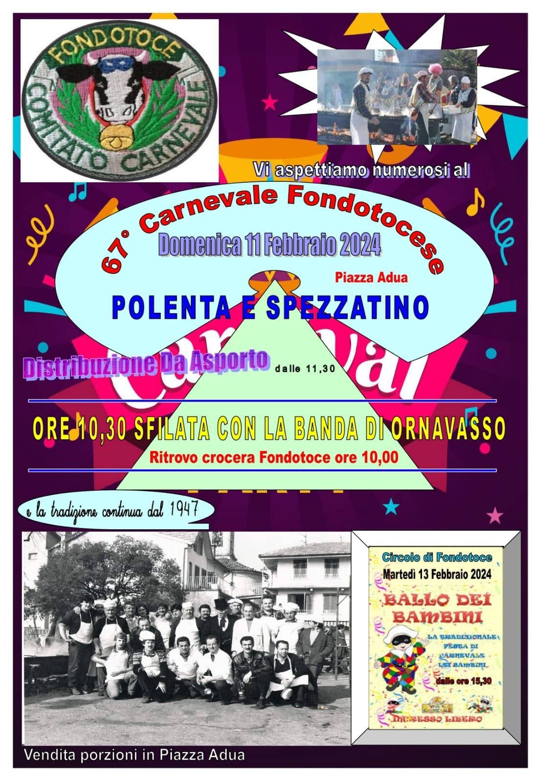 Domenica 11 febbraio alle 10:30 sfilata con la banda di Ornavasso a partire dalla crociera (ritrovo ore 10)