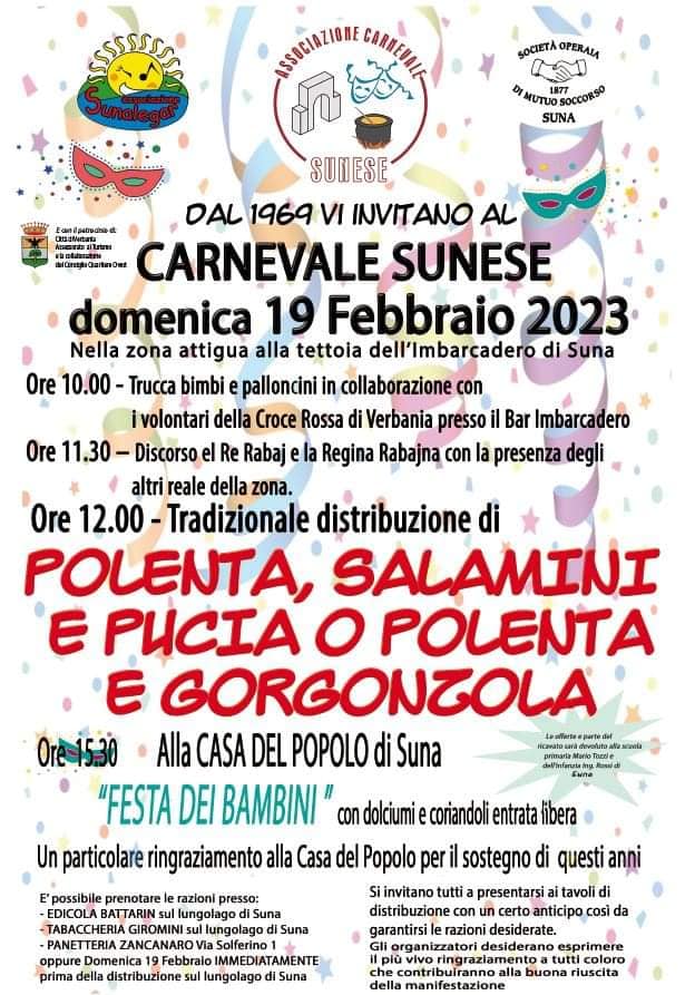 Il tradizionale Carnevale Sunese, attivo dal 1969, attende tutti nella zona attigua al vecchio imbarcadero di Suna