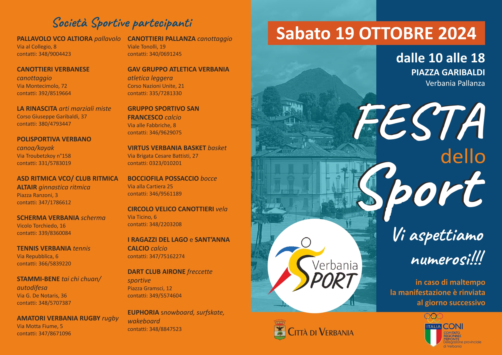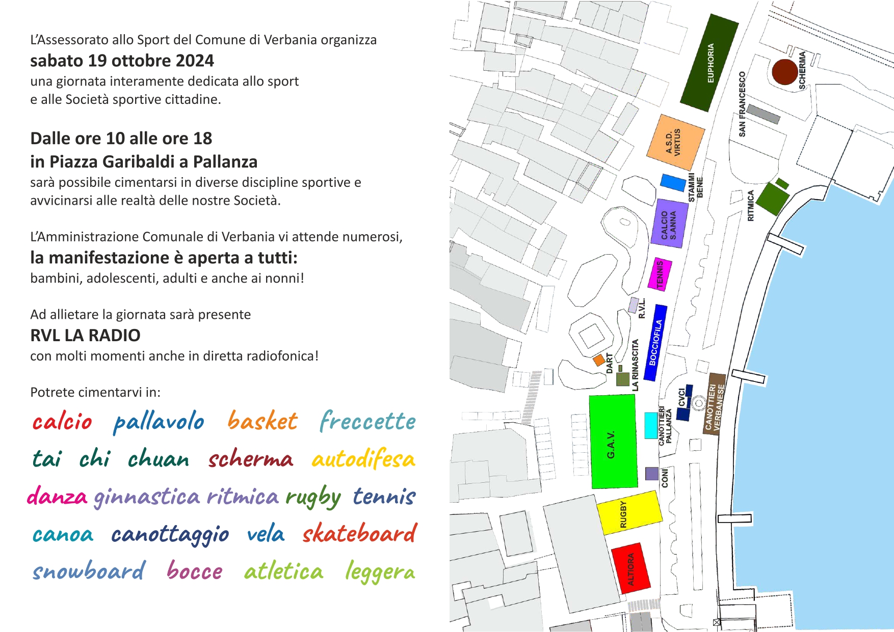 L'Assessorato allo Sport del Comune di Verbania organizza una giornata interamente dedicata allo sport e a alle Società sportive cittadine