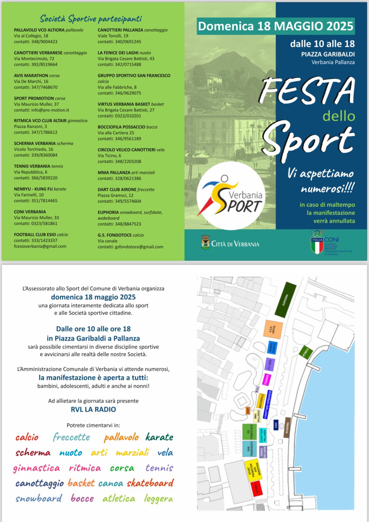 Torna a Pallanza (Piazza Garibaldi) la FESTA DELLO SPORT!