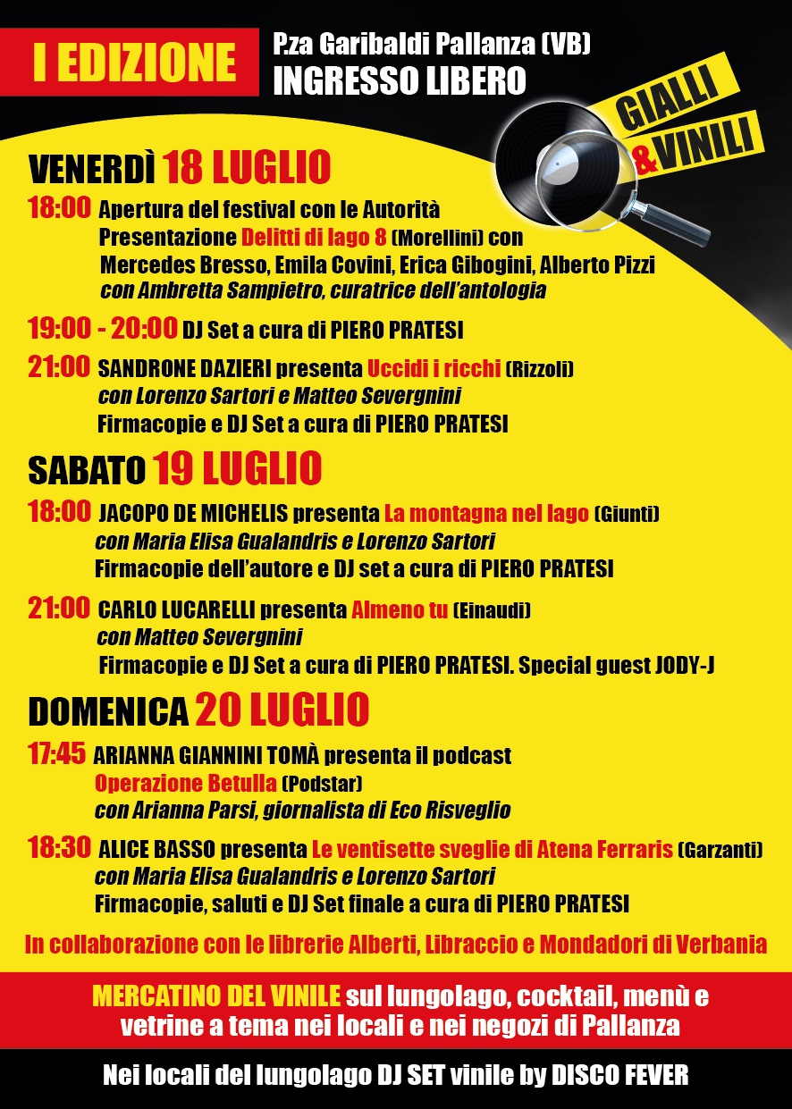 Gialli & Vinili , Festival di Storie & Musica in collaborazione con Città di Verbania, Pro loco Verbania, librerie Alberti, Libraccio e Mondadori.