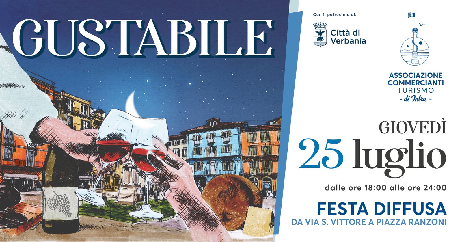 Gustabile, una serata indimenticabile dedicata alla degustazione di vini e prodotti tipici piemontesi, e alla buona musica! Sarà una grande occasione per scoprire le eccellenze del nostro territorio! L’evento, questa volta, abbraccerà l’intero centro storico della nostra città, grazie ad una festa diffusa in Piazza Ranzoni e in Piazza San Vittore!
