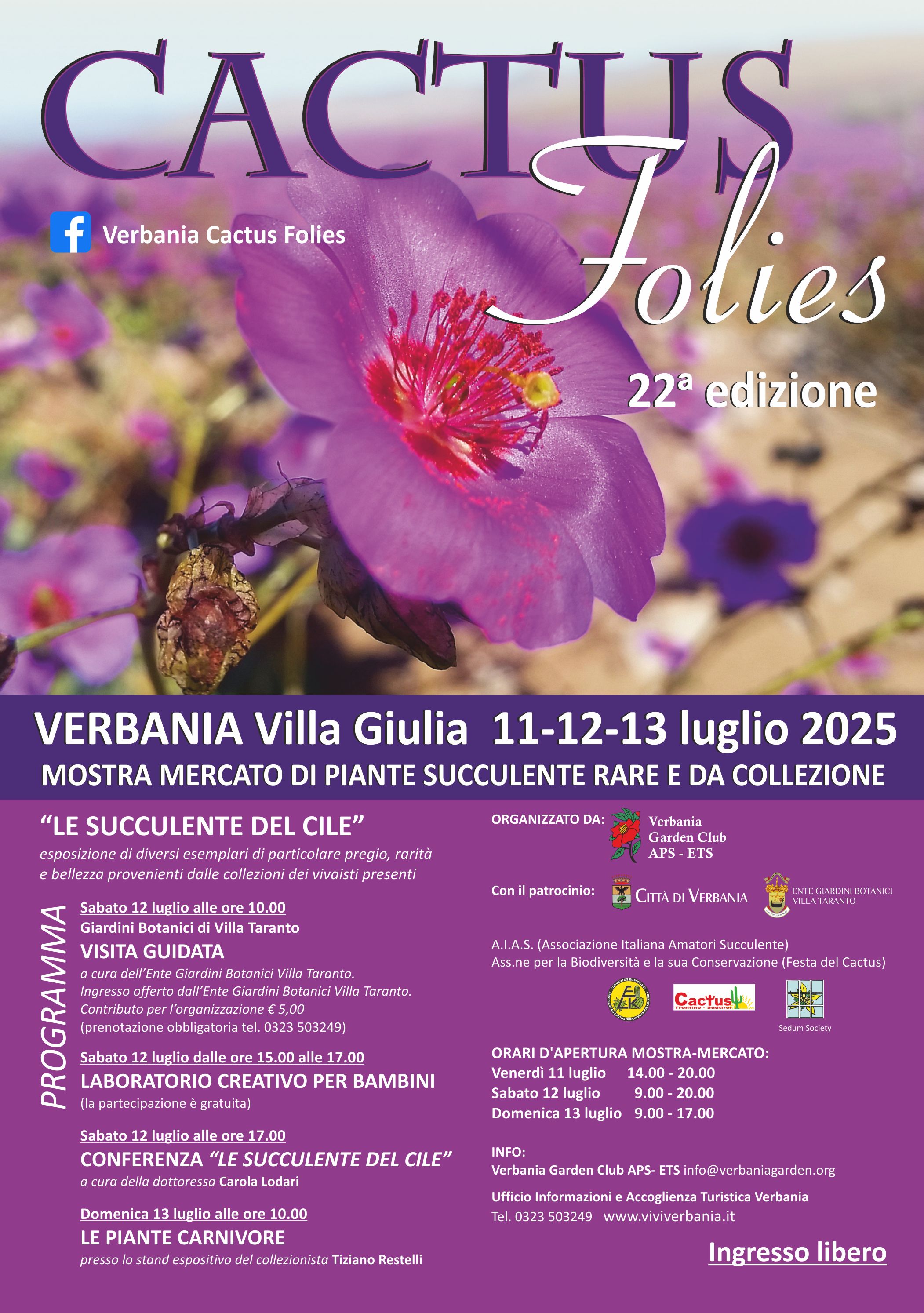 ore 10.00 Visita guidata ai Giardini botanici di Villa Taranto con prenotazione obbligatoria presso l'Ufficio del Turismo tel. +39 0323 503249 € 5.00 ( contributo per l'organizzazione). Ingresso offerto dall' Ente Giardini botanici di Villa Taranto